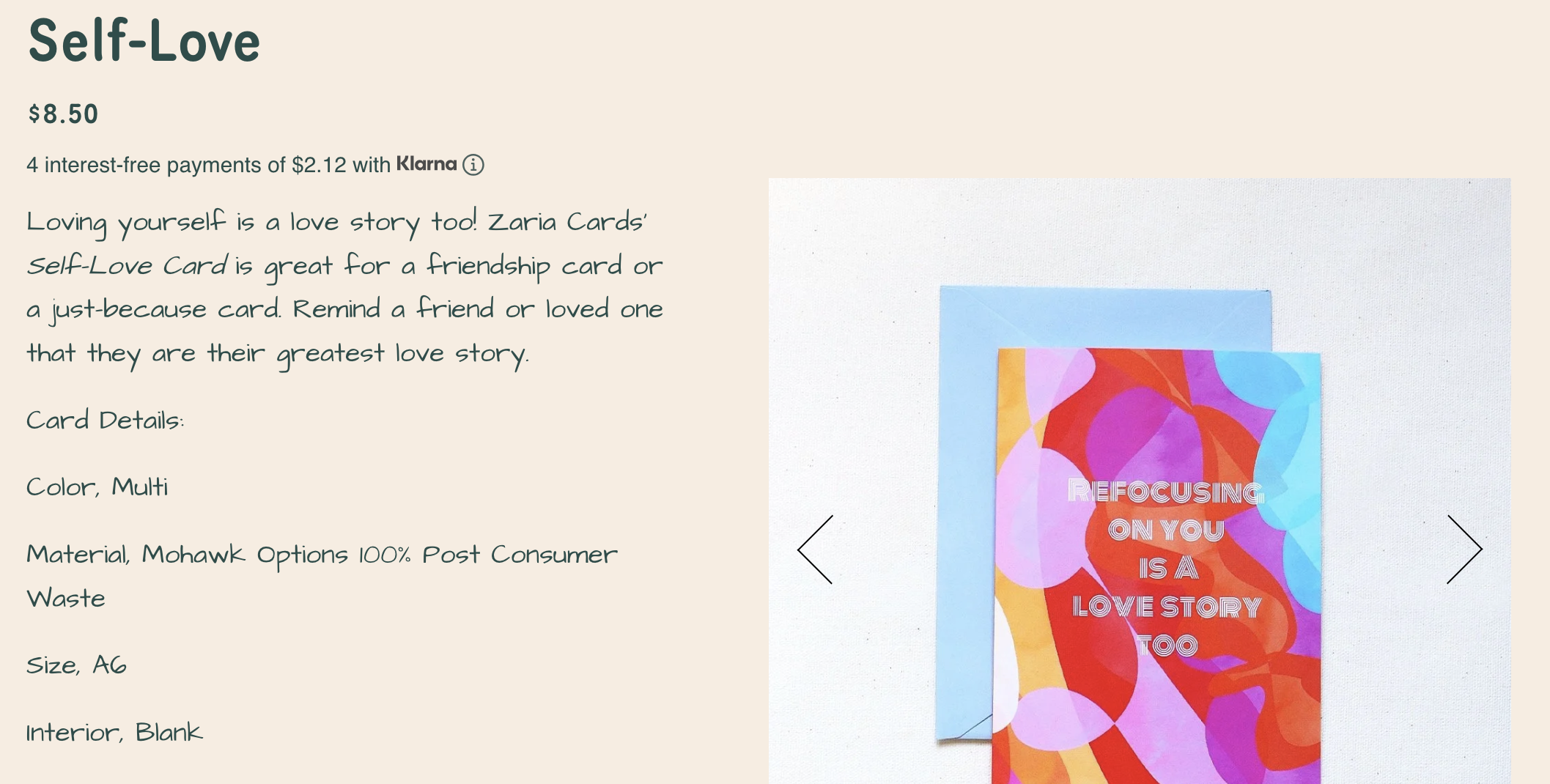 I crafted the product page copy for the Self-Love Card in The Bloom Collection and directed the creative vision—including messaging, design, and product photography. The collection honors self-growth, transformation, and individuality, with each piece intentionally designed to feel personal, meaningful, and gift-worthy. The Bloom Collection received coverage in prestigious stationery magazines, further amplifying Zaria’s expressive and empowering brand voice.